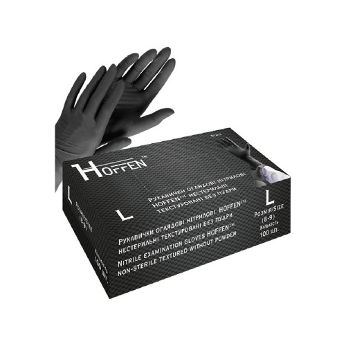 Нітрилові рукавиці чорні Hoffen L 100 штук